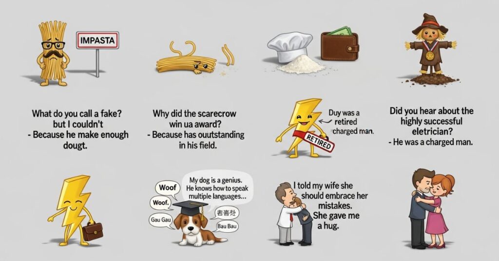Exploring bad pun in English, one-liners, and even Reddit threads gives you endless examples to enjoy or use. They remind us that humor doesn’t always have to be perfect sometimes, the cheesiest jokes are the most memorable.