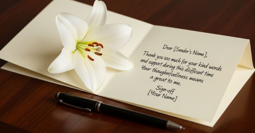 - Add professional touch: “I am grateful for your thoughtful words and prayers.”