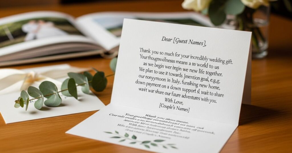 Wedding Thank You Example Messages for Cash Gifts
